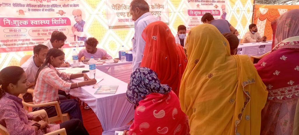 खेमलीl किंग सेना मातृभूमि धर्म संघ और पेसिफिक मेडिकल कॉलेज एवं अस्पताल के संयुक्त तत्वाधान में रविवार को यहां विजनवास पंचायत मुख्यालय पर निशुल्क स्वास्थ्य शिविर का आयोजन किया गया.
