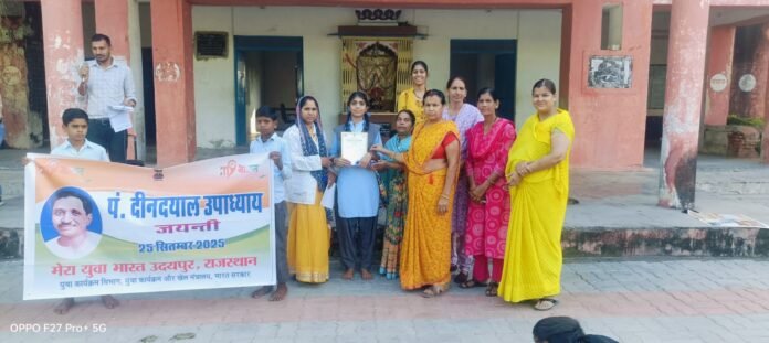 निबंध प्रतियोगिता में मोनिका यादव ने प्रथम स्थान, महेंद्र सिंह ने द्वितीय स्थान और यशपाल सिंह ने तृतीय स्थान प्राप्त किया। विजेताओं को मेरा युवा भारत उदयपुर की ओर से पुरस्कार प्रदान किए गए।