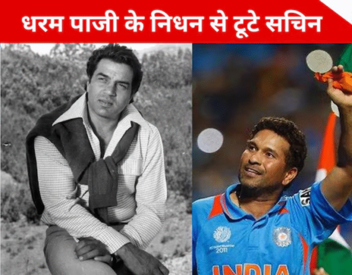 Dharmendra Death News: दिग्गज अभिनेता धर्मेंद्र के निधन से न सिर्फ बॉलीवुड, बल्कि पूरा क्रिकेट जगत भी शोक में डूब गया है। ‘ही-मैन’ ने 89 वर्ष की उम्र में अंतिम सांस ली। पूर्व भारतीय महान बल्लेबाज़ सचिन तेंदुलकर ने धर्मेंद्र को भावुक श्रद्धांजलि देते हुए कहा कि उन्हें ऐसा महसूस हो रहा है, मानो उनका 10 किलो खून कम हो गया हो।