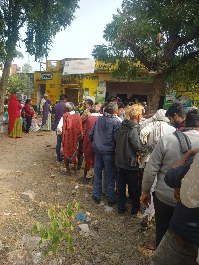 भारत यूरिया इफको नीम लेपित यूरिया खाद का 45 किग्रा का बैग वितरण किया गया। दो बजे तक यूरिया खाद वितरण किया गया ।