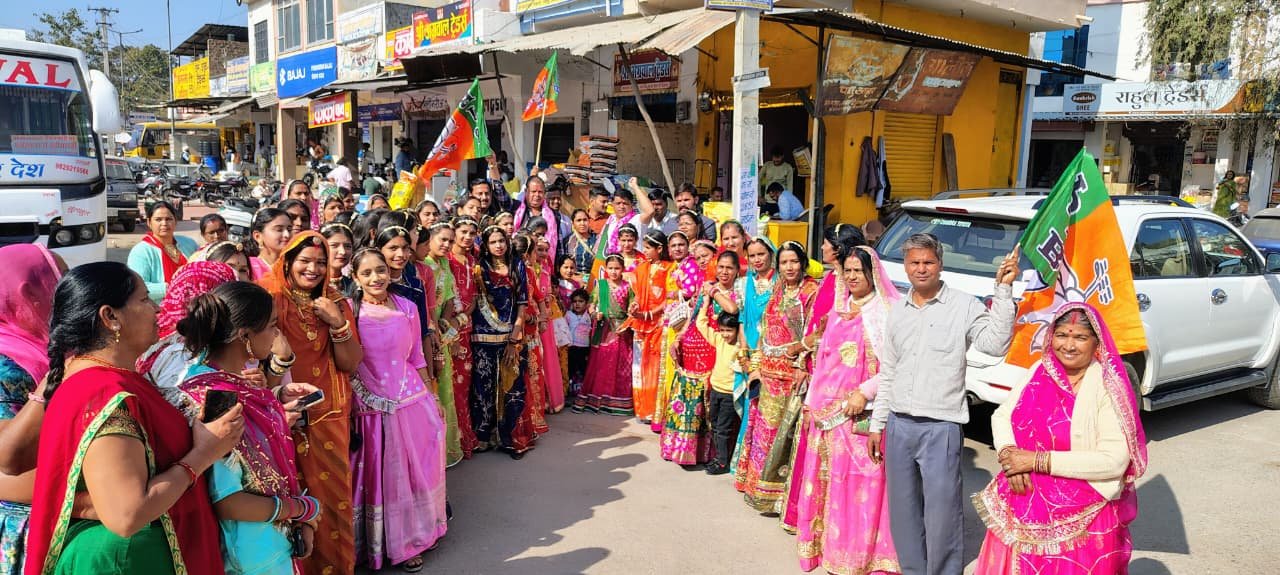 इसी क्रम में नगर पालिका क्षेत्र फतहनगर से जिला मंत्री ऋतु अग्रवाल के नेतृत्व में दो बसों द्वारा महिला प्रतिभागियों को घूमर नृत्य हेतु चित्तौड़गढ़ के लिए रवाना किया गया। बसों को विधानसभा प्रत्याशी कृष्ण गोपाल पालीवाल, नगर पालिका चेयरमैन मंजू अग्रवाल, मंडल अध्यक्ष नितिन सेठिया, भारतीय जनता पार्टी पार्षद गजेंद्र सिंह रावल, सोहन खटीक, सचिन मीणा, बूथ अध्यक्ष नटवर अग्रवाल, राजेश टेलर, श्रेयांश पोखरना सहित कार्यकर्ताओं ने पार्टी ध्वज दिखाकर रवाना किया।