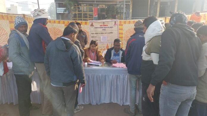 उदयपुर, 7 जनवरी। श्रम आयुक्त महोदया, राजस्थान, जयपुर के निर्देशानुसार वर्ष 2026 में प्रति माह शहर की एक श्रमिक चौखटी पर निर्माण श्रमिकां के भवन एवं अन्य संनिर्माण श्रमिक कल्याण मंडल के तहत श्रमिक पंजीयन एवं ई-श्रम पंजीयन किये जाने हेतु बुधवार को शहर के सवीना चौराहा श्रमिक चौखटी पर श्रम विभाग द्वारा शिविर का आयोजन किया गया, जिसमे वहाँ उपस्थित श्रमिकों को विभाग की कल्याणकारी योजनाओं की जानकारी दी गई तथा श्रमिक कार्ड एवं ई-श्रम पंजीयन हेतु जागरूक किया गया।