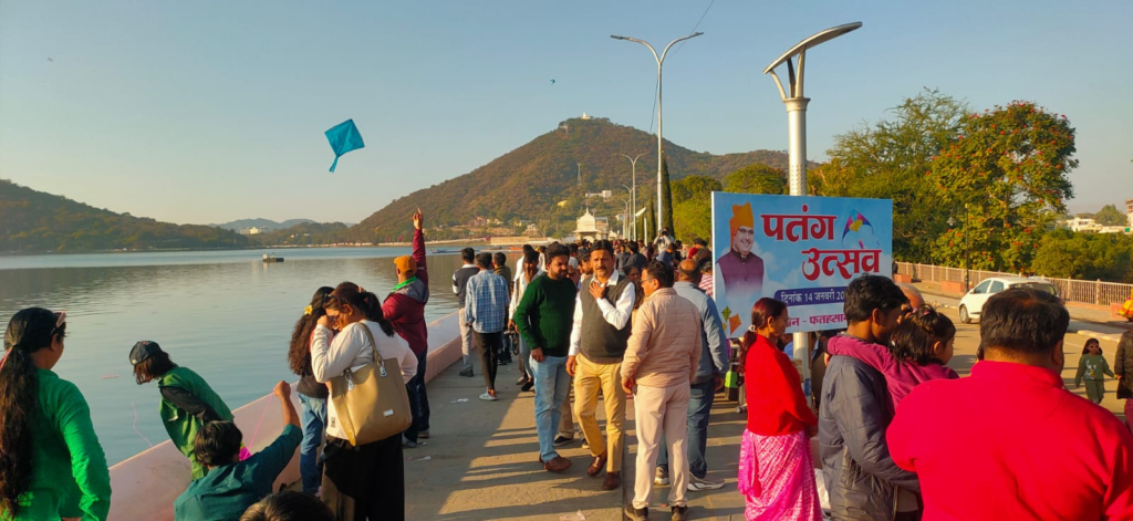 राज्य सरकार के निर्देशानुसार बुधवार को मकर संक्रांति के अवसर पर राज्य भर में संभागीय मुख्यालयों एवं प्रमुख पर्यटन स्थलों पर पतंग उत्सव आयोजित किए गए। इसी क्रम में उदयपुर संभाग मुख्यालय पर भी संभाग स्तरीय पतंग उत्सव आयोजित हुए। जिला कलेक्टर नमित मेहता के निर्देशन में पर्यटन विभाग की ओर से शहर की विश्वप्रसिद्ध फतहसागर झील की पाल, पिछोला स्थित गणगौर घाट, मोतीमगरी तथा मेवाड़ के मुकुटमणी के नाम से विख्यात सज्जनगढ़ दुर्ग स्थल पर पतंग उत्सव हुए। फतहसागर की पाल पर आयोजित मुख्य कार्यक्रम में अतिरिक्त जिला कलक्टर प्रशासन दीपेंद्रसिंह राठौड़, अतिरिक्त जिला कलक्टर शहर जितेंद्र ओझा, बड़गांव एसडीएम लतिका पालीवाल, गिर्वा एसडीएम अवुला सांईकृष्ण, पर्यटन उपनिदेशक शिखा सक्सेना आदि ने भी पतंगबाजी का लुत्फ लिया। पाल पर सैकड़ों की संख्या में शहरवासी तथा पर्यटकों ने पतंगें उड़ाई। इस दौरान हर आयु वर्ग के लोगों में अपार उत्साह देखा गया। सभी आगंतुकों को तिल के लड्डू और गजक का वितरण भी किया गया। गणगौर घाट पर नगर निगम आयुक्त अभिषेक खन्ना के निर्देशन में उपायुक्त दिनेश कुमार मंडोवरा, अधिशासी अभियंता शशि बाला सिंह, स्वास्थ्य अधिकारी सत्यनारायण शर्मा, निगम पुलिस निरीक्षक मांगीलाल डांगी सहित शहर के गणमान्य एवं पर्यटकों ने पतंग उड़ा कर इस त्यौहार को उत्सव के रूप में मनाया।