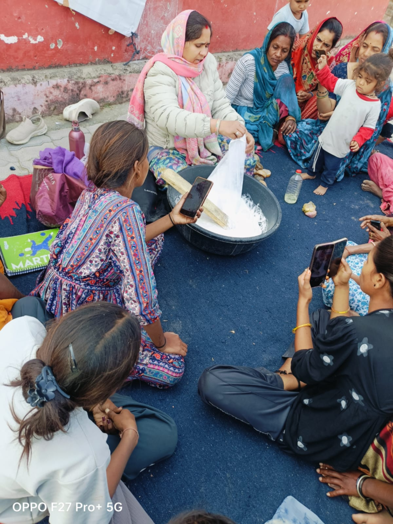संगठन की महिला प्रकोष्ठ की वरिष्ठ पदाधिकारी एवं राष्ट्रपति युवा पुरस्कार प्राप्त श्रीमती भगवती जोशी ने महिलाओं को प्रशिक्षण प्रदान किया। आज के सत्र में महिलाओं को सर्फ बनाने की प्रक्रिया का व्यावहारिक प्रशिक्षण दिया गया। प्रशिक्षण के दौरान महिलाओं ने खुद से भी सर्फ बनाना सिखाl