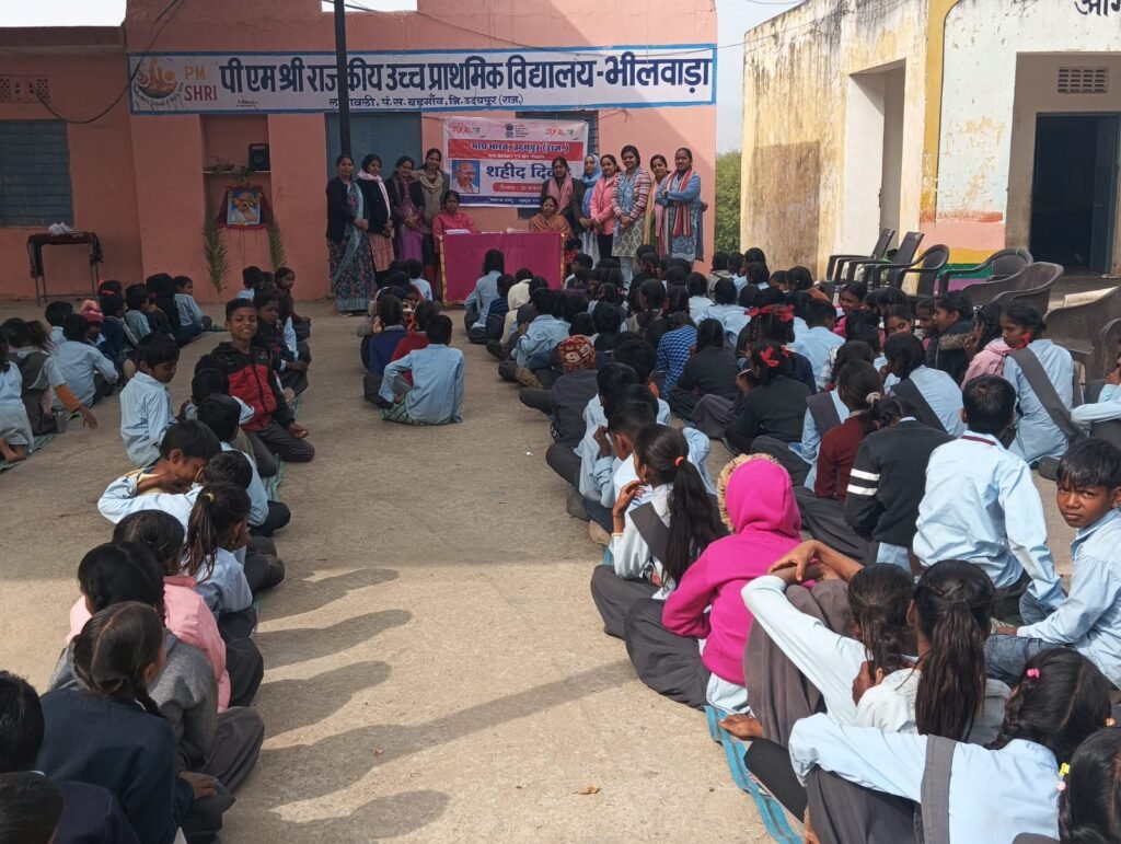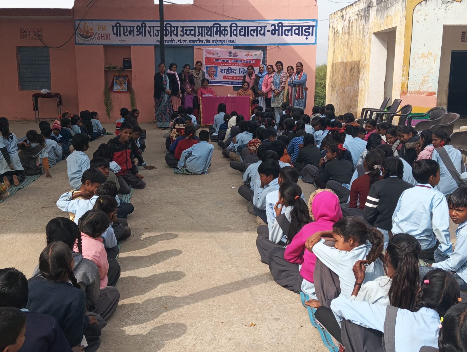 उदयपुर,30 जनवरी। पीएम श्री राजकीय उच्च प्राथमिक विद्यालय, लखावाली में शहीद दिवस के अवसर पर माय भारत, उदयपुर (राज.) युवा कार्यक्रम एवं खेल मंत्रालय, भारत सरकार एवं समर्थ सेवा संस्थान के संयुक्त तत्वाधान में श्रद्धांजलि कार्यक्रम का आयोजन किया गया। पंचायत समिति बड़गांव की पंचायत लखावली के भीलवाड़ा में आयोजित कार्यक्रम का उद्देश्य राष्ट्रपिता महात्मा गांधी सहित देश के अमर शहीदों को नमन करना तथा विद्यार्थियों में देशभक्ति, सत्य और अहिंसा के मूल्यों को विकसित करना रहा।