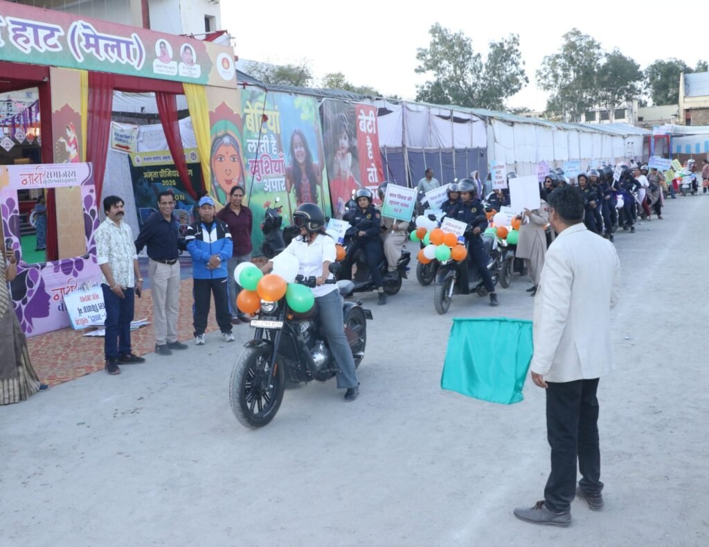 उदयपुर, 23 फरवरी। अमृता मेले के चौथे दिन महिला सशक्तिकरण, सुरक्षा और सामाजिक जागरूकता के संदेश के साथ कई प्रभावशाली कार्यक्रमों का आयोजन किया गया। निर्भया कमांडो और पुलिस विभाग के संयुक्त तत्वावधान में एक भव्य बाइक रैली निकाली गई। रैली को अंतरराष्ट्रीय राइफल शूटर पलक गुर्जर की गरिमामयी उपस्थिति ने विशेष पहचान दी। रैली अमृता हाट से प्रारंभ होकर दिल्ली गेट, बाबू बाजार, जगदीश चौक, हाथीपोल और गुलाब बाग होते हुए पुनः अमृता हाट पहुंची। पूरे मार्ग में “बेटी बचाओ, बेटी पढ़ाओ”, “बाल विवाह बंद करो” और “महिला हिंसा का विरोध करो” जैसे नारों से वातावरण गुंजायमान रहा। शहरवासियों ने जगह-जगह पुष्पवर्षा कर रैली का स्वागत किया। पुलिस विभाग द्वारा सुरक्षा के पुख्ता इंतजाम किए गए ।