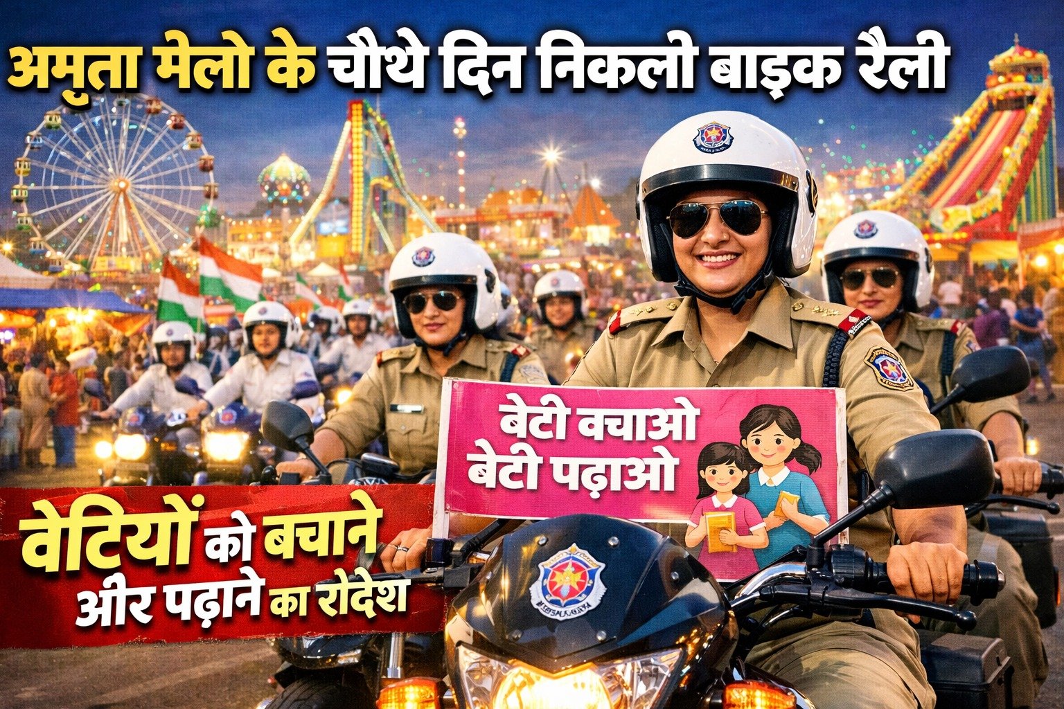 उदयपुर, 23 फरवरी। अमृता मेले के चौथे दिन महिला सशक्तिकरण, सुरक्षा और सामाजिक जागरूकता के संदेश के साथ कई प्रभावशाली कार्यक्रमों का आयोजन किया गया। निर्भया कमांडो और पुलिस विभाग के संयुक्त तत्वावधान में एक भव्य बाइक रैली निकाली गई। रैली को अंतरराष्ट्रीय राइफल शूटर पलक गुर्जर की गरिमामयी उपस्थिति ने विशेष पहचान दी। रैली अमृता हाट से प्रारंभ होकर दिल्ली गेट, बाबू बाजार, जगदीश चौक, हाथीपोल और गुलाब बाग होते हुए पुनः अमृता हाट पहुंची। पूरे मार्ग में “बेटी बचाओ, बेटी पढ़ाओ”, “बाल विवाह बंद करो” और “महिला हिंसा का विरोध करो” जैसे नारों से वातावरण गुंजायमान रहा। शहरवासियों ने जगह-जगह पुष्पवर्षा कर रैली का स्वागत किया। पुलिस विभाग द्वारा सुरक्षा के पुख्ता इंतजाम किए गए ।