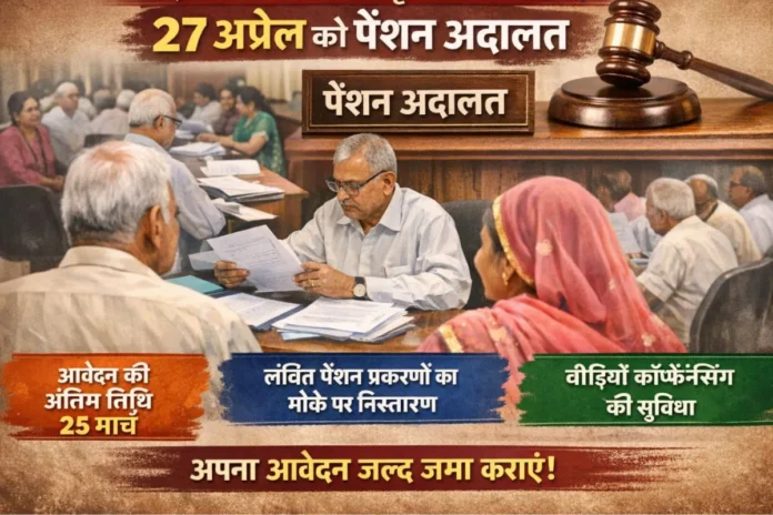 उदयपुर, 23 मार्च। पेंशन एवं पेंशनर्स कल्याण विभाग, जयपुर के निर्देशानुसार उदयपुर संभाग स्तर पर प्रथम पेंशन अदालत का आयोजन 27 अप्रैल 2026 को अतिरिक्त निदेशक, पेंशन एवं पेंशनर्स कल्याण विभाग (क्षेत्रीय कार्यालय, उदयपुर) द्वारा किया जाना है। पेंशन अदालत का आयोजन राजस्थान सरकार के राजकीय सेवाओं से सेवानिवृत्त / सेवानिवृत्त होने वाले अधिकारियों/कर्मचारियों के पेंशन प्रकरण प्रस्तुत करने में आ रही समस्याओं एवं शिकायतों के लिए किया जा रहा है।
