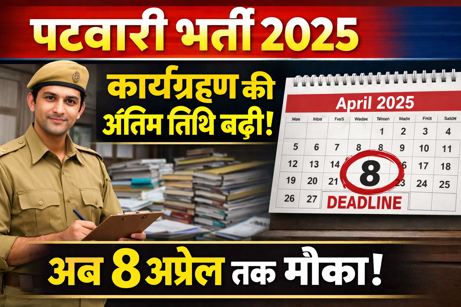 पटवारी भर्ती 2025 कार्यग्रहण की अंतिम तिथि बढ़ी, अब 8 अप्रैल तक मौका