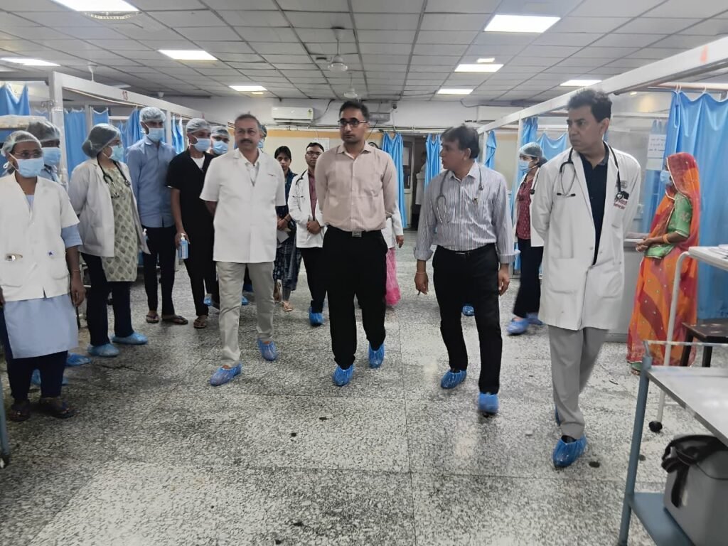 उदयपुर, 23 अप्रैल। जिला कलेक्टर गौरव अग्रवाल ने महाराणा भूपाल चिकित्सालय के शिशु रोग विभाग में स्वास्थ्य सेवाओं की गुणवत्ता और बुनियादी ढांचे को और अधिक सुदृढ़ बनाने के उद्देश्य से गुरुवार सुबह सघन निरीक्षण किया। निरीक्षण के दौरान आर.एन.टी. मेडिकल कॉलेज के प्रिंसिपल एवं नियंत्रक डॉ. राहुल जैन, एमबी अस्पताल के अधीक्षक डॉ. आर.एल. सुमन और बाल चिकित्सालय विभागाध्यक्ष डॉ. विवेक अरोड़ा सहित वरिष्ठ अधिकारी उपस्थित रहे।